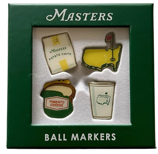 Nothing is more subtly iconic at The Masters than a white frosted cup and a pimento cheese sandwich. This set of four ballmarkers features iconic concessions items such as the pimento cheese sandwich, white frosted cup, classic potato chips and the Master logo. Be the talk of the green during your next round of golf with these!